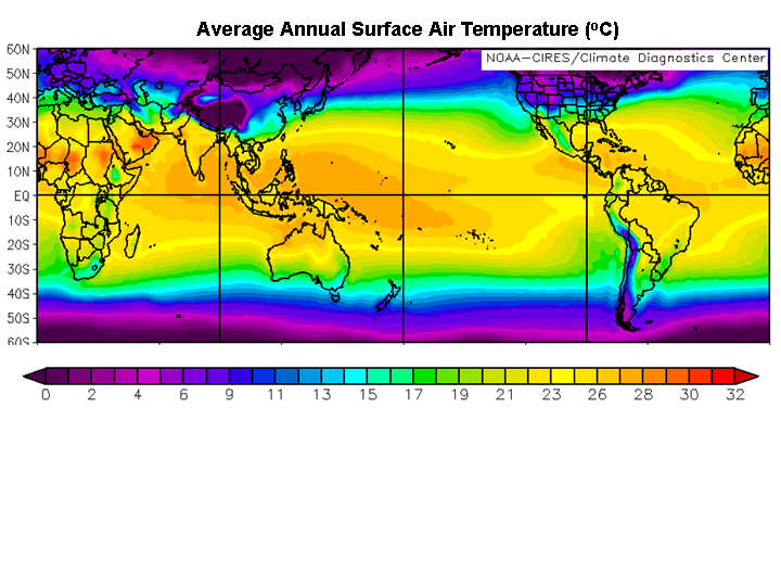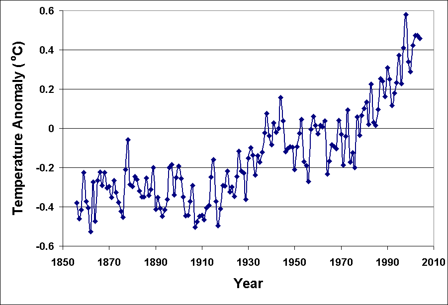 - Figure 18.16 : Time series of global surface average air temperature since the mid 1850s (data from http://www.cru.uea.ac.uk/cru/data/temperature/)