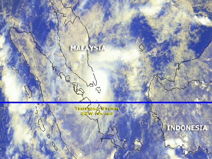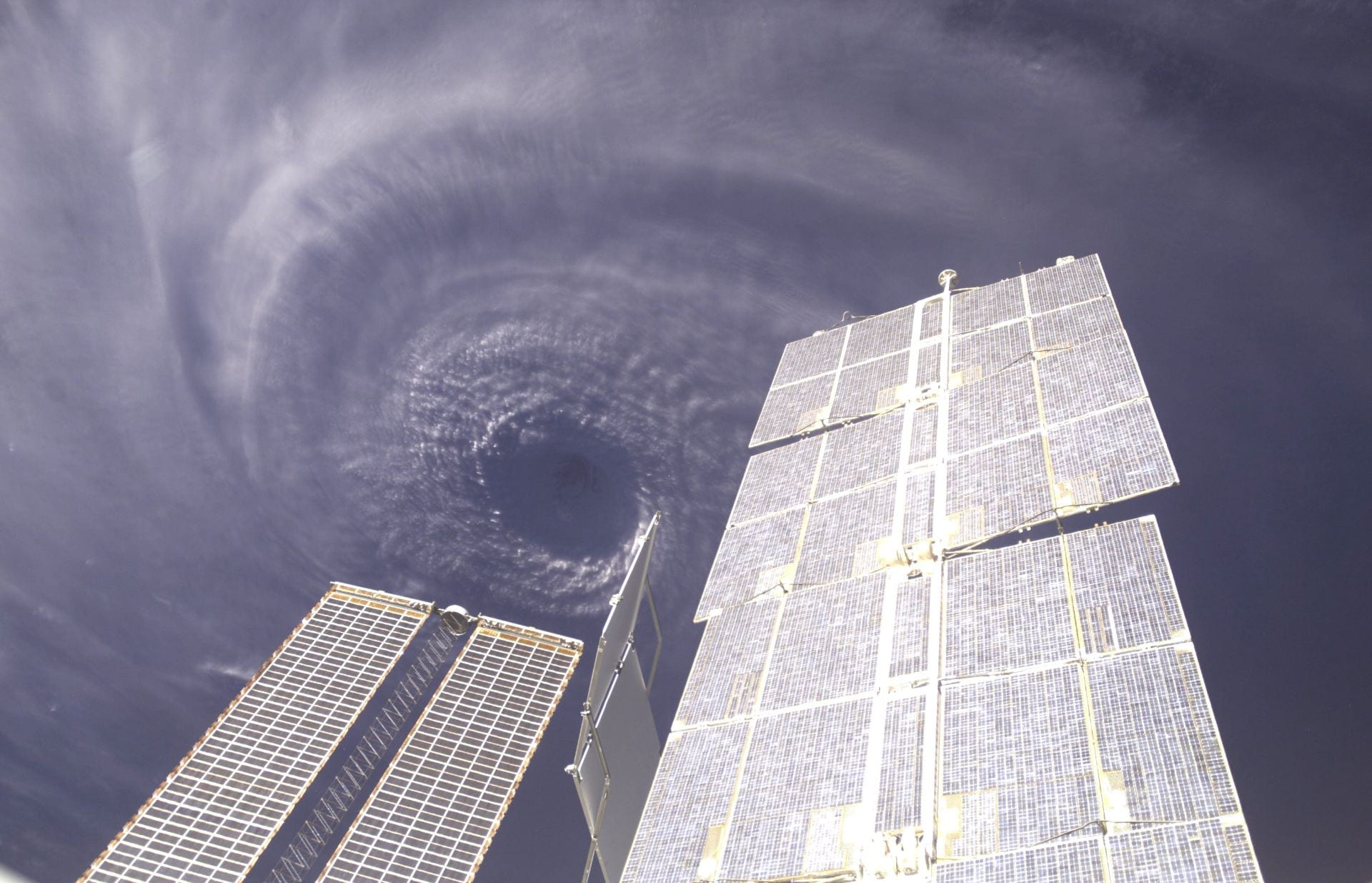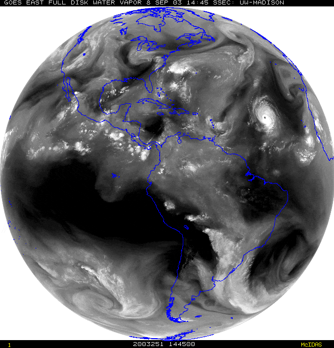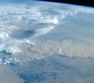 - Figure 18.20 : Stratospheric aerosols visible from satellite imagery, after the eruption of Mount Pinatubo (courtesy of Pat McCormick, NASA)