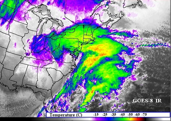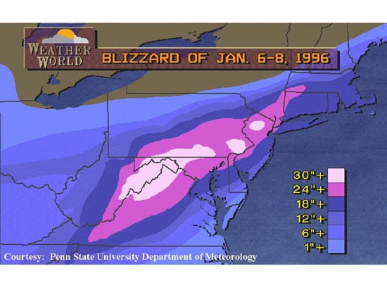 - Figure 18.36a ,Figure 18.36 : Snowcover in the wake of the President's Day snowstorm of 2003 (courtesy of NOAA)