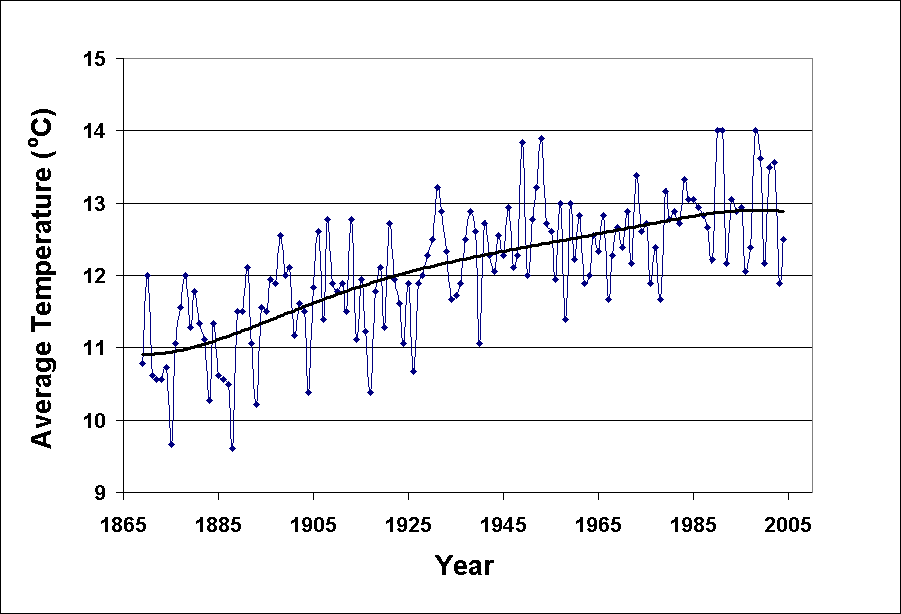 - Figure 18.12 : Average annual temperature trend in Central Park, New York City