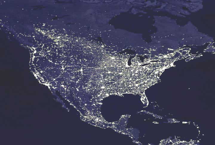 Figure 18.1b : Earth from space, at night (courtesy of NASA)