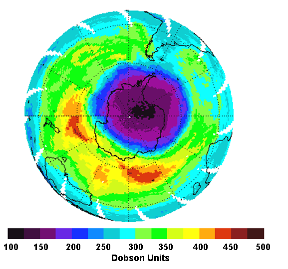 - Figure 18.30 : Stratospheric ozone levels on October 6, 2004 (courtesy of NASA)