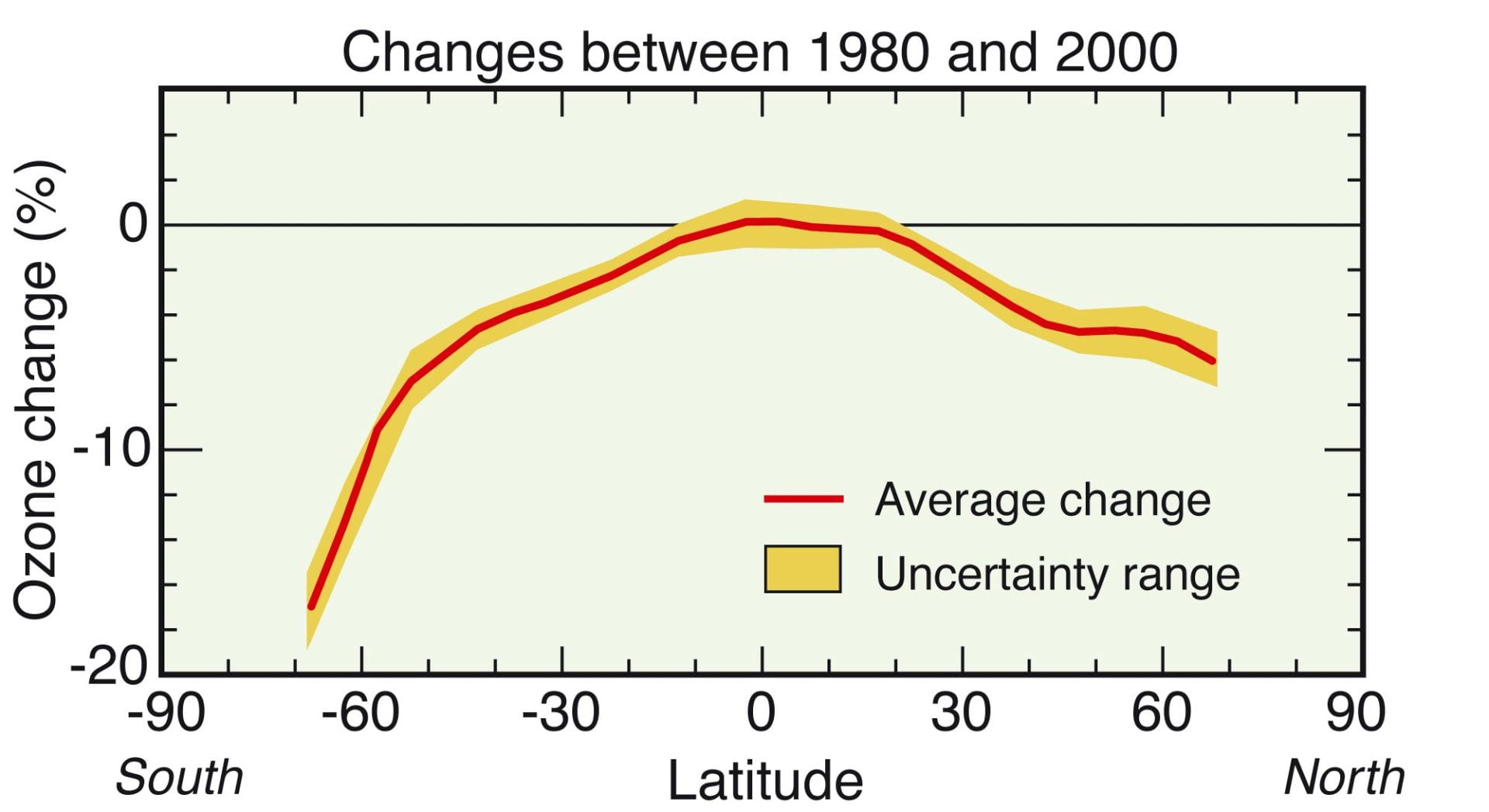 - Figure 18.31 : Trends in stratospheric ozone from 1980 to 2000, as a function of latitude (courtesy of NOAA)