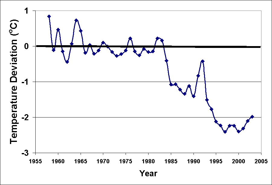 - Figure 18.32 : Average lower stratospheric temperature since 1958 (data from http://cdiac.esd.ornl.gov/trends/temp/angell/data.html)