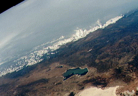 Figure 18.17b : Satellite images of Mount Kilimanjaro, taken seven years apart, show reduction in ice on the mountain (courtesy of NOAA)