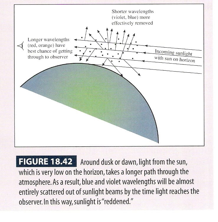- Figure 18.42 : Why sunsets and sunrises are reddish