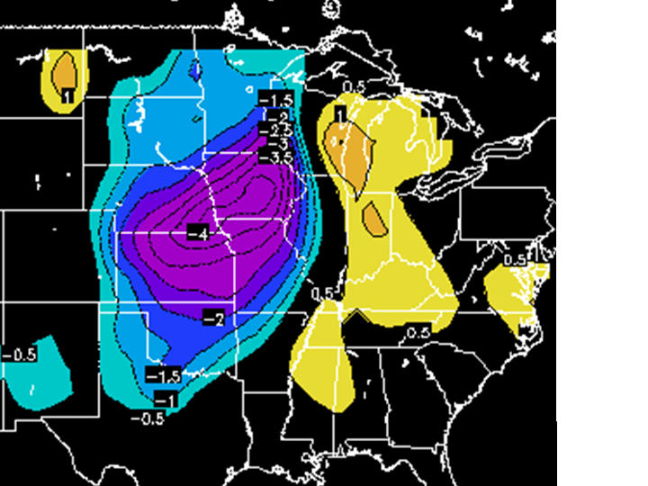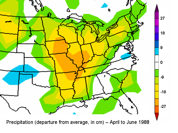 - Figure 18.4 : Precipitation departure from average, April-June 1988 (courtesy of Climate Diagnostics Center)