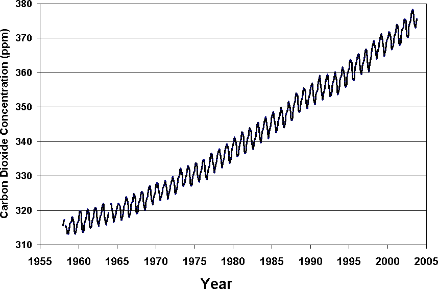 - Figure 18.5a ,Figure 18.5b : The Mauna Loa observatory, and the Keeling curve(data from http://cdiac.esd.ornl.gov/trends/co2/sio-mlo.htm, image courtesy of NOAA)