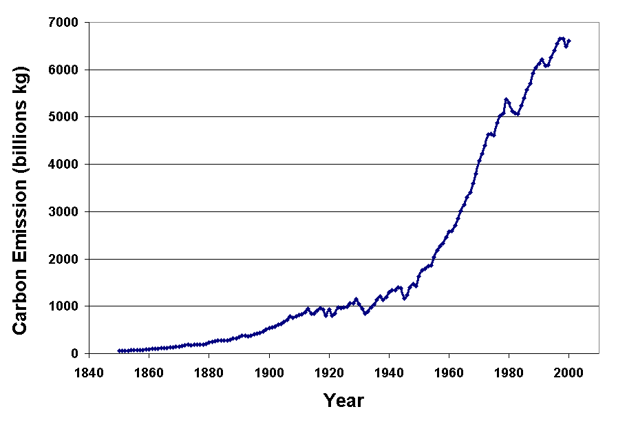 - Figure 18.7 : Annual global carbon emissions from fossil-fule burning (data from http://cdiac.esd.ornl.gov/trends/emis/tre_glob.htm)