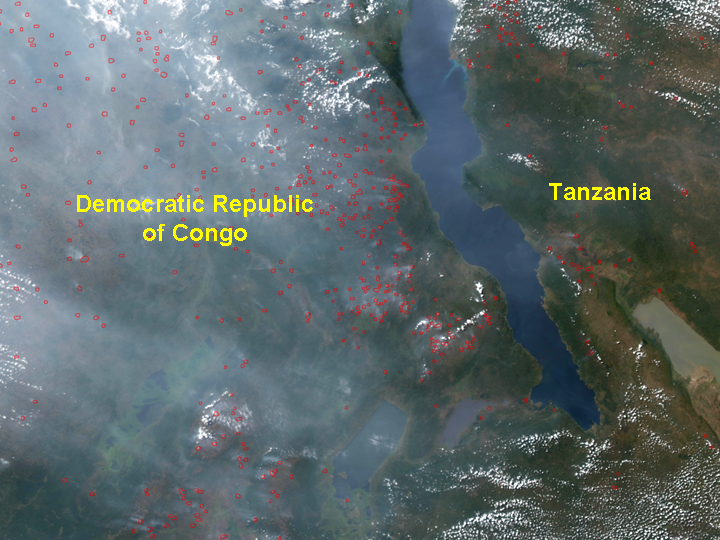 - Figure 18.8 : Smoke and haze from fires over central Africa (courtesy of NASA)